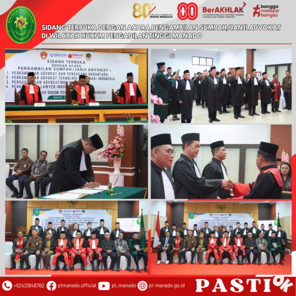 In Berita 0 Sidang Terbuka Dengan Agenda Pengambilan Sumpah/Janji Advokat di Wilayah Hukum Pengadilan Tinggi Manado.