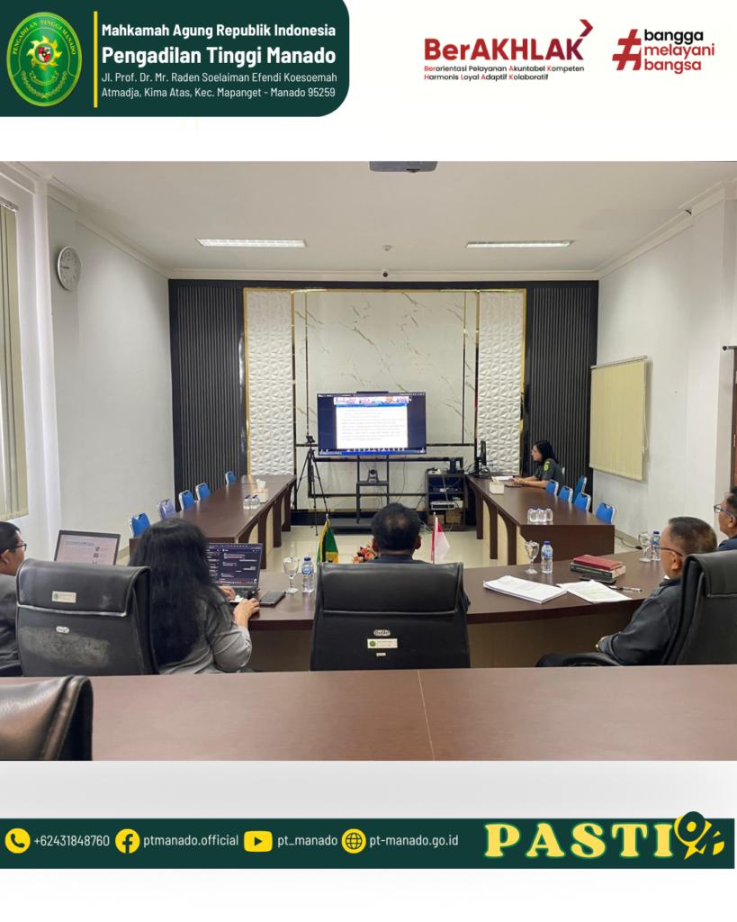 Manado, 28 Januari 2026 — Pengadilan Tinggi Manado menyelenggarakan Pembinaan dan Sosialisasi Kitab Undang-Undang Hukum Acara Pidana (KUHAP) Baru berdasarkan Undang-Undang Nomor 20 Tahun 2025, Rabu (28/1). Kegiatan ini dilaksanakan secara daring melalui aplikasi Zoom Meeting dan diikuti oleh Hakim Tinggi Pengadilan Tinggi Manado, Panitera Pengadilan Tinggi Manado, serta Ketua, Wakil Ketua, Hakim, dan Panitera Pengadilan Negeri se-Wilayah Pengadilan Tinggi Manado.