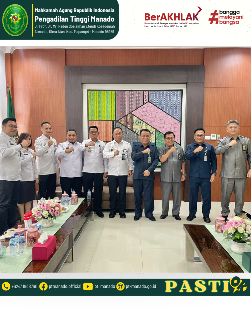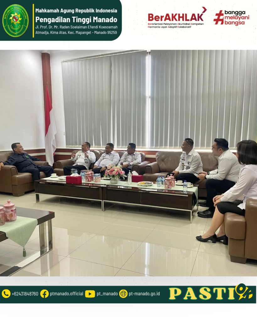 Manado – Pengadilan Tinggi Manado menerima audiensi dari Kantor Wilayah Kementerian Hukum Sulawesi Utara pada Rabu, 28 Januari 2026, bertempat di Pengadilan Tinggi Manado.