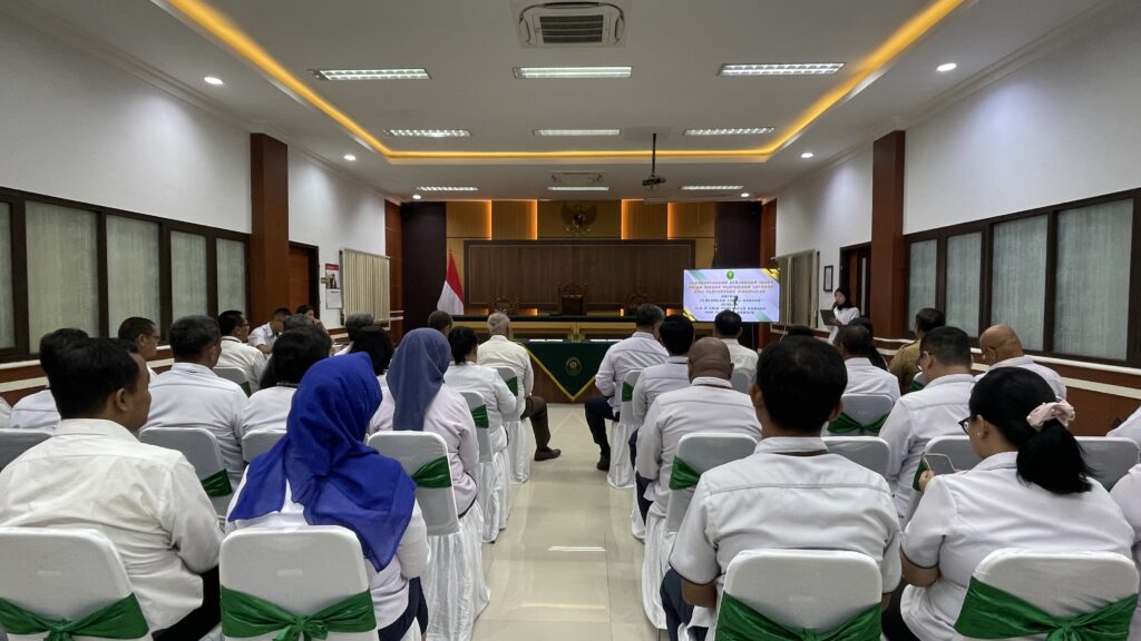 Kegiatan berlangsung di Ruang Serba Guna Pengadilan Tinggi Manado dan dihadiri oleh pejabat serta aparatur Pengadilan Tinggi Manado.