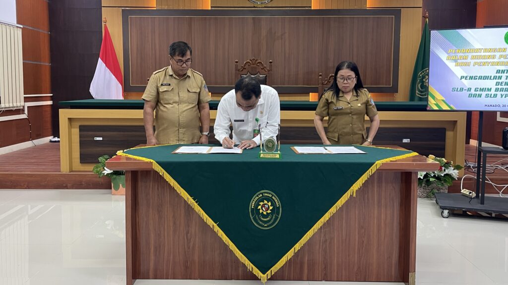 Manado, Senin 20 Oktober 2025 — Pengadilan Tinggi Manado melaksanakan Penandatanganan Nota Kesepahaman (MoU) kerja sama di bidang penyediaan layanan bagi penyandang disabilitas.