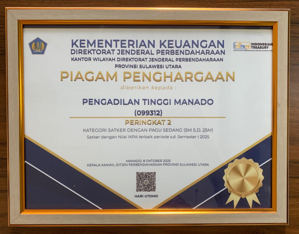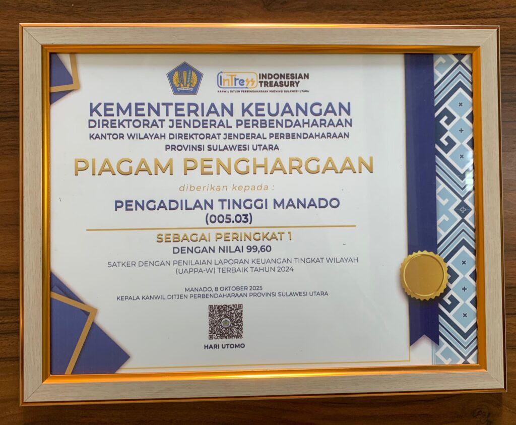 Penghargaan ini menjadi bentuk apresiasi atas komitmen PT Manado dalam pengelolaan keuangan negara yang transparan, akuntabel, dan berkinerja tinggi.