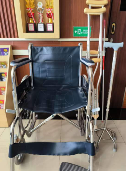 Tersedia alat bantu mobilitas untuk penyandang disabilitas berupa kursi roda dan krek (tongkat) yang terdapat pada ruang PTSP Pengadilan Tinggi Manado.