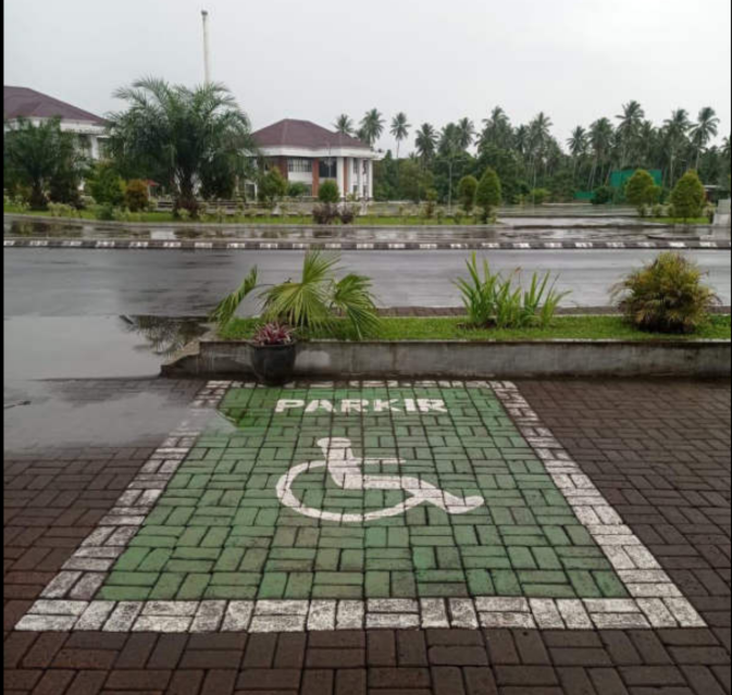 Tempat Parkir Khusus Disabilitas terletak dihalaman depan Kantor Pengadilan Tinggi Manado, berdekatan dengan jalur disabilitas sebagai akses masuk Kantor engadilan Tinggi Manado.