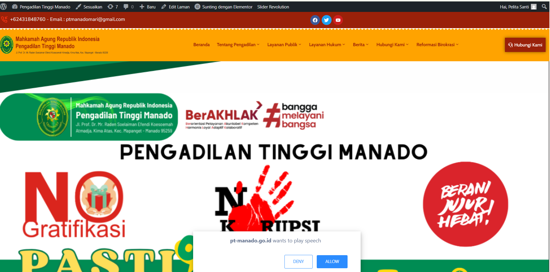 Website Pengadilan Tinggi Manado sudah dilengkapi dengan screen reader, dimana menu-menu yang dipilih pada website akan mengeluarkan bunyi atau suara sesuai dengan menu dipilih.